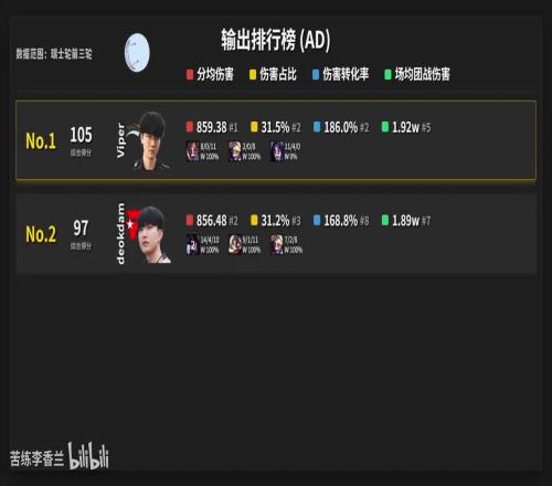 S15前三轮AD榜:Viper综合第一JKL第十二Elk第十四Hope第十六