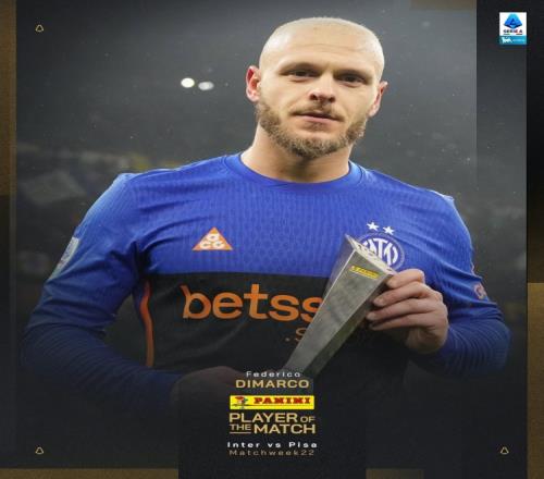 1球2助攻!官方:28岁边后卫迪马尔科当选国米vs比萨全场最佳球员